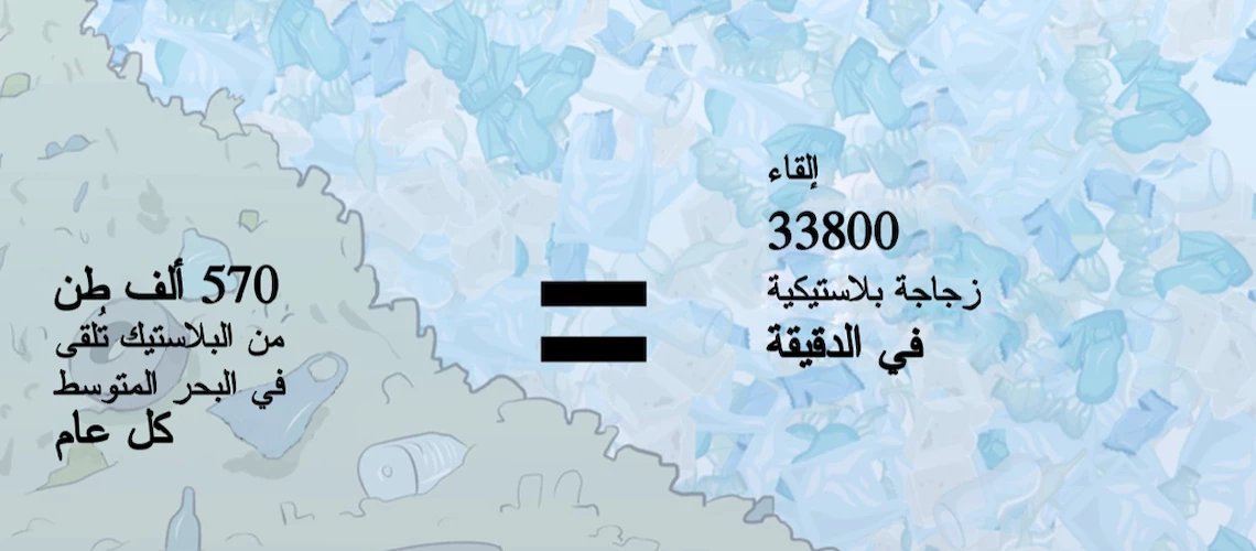 في كل عام، يُلقى في البحر المتوسط نحو 570 ألف طن من المواد البلاستيكية - أي ما يعادل 33800 زجاجة بلاستيكية في الدقيقة. وذكر الصندوق العالمي للأحياء البرية - الذي حقق في الضرر - أن التأثير الذي يحدثه هذا الأمر على الأنظمة الإيكولوجية البحرية والصناعات البحرية - مثل السياحة ومصائد الأسماك - يُلحق ببلدان البحر المتوسط خسائر اقتصادية تقدر بنحو 770 مليون دولار سنوياً.