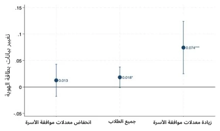 من أبرز النتائج التي توصلت إليها هذه الدراسة دور الأسرة. ولأغراض تحليل عدم التجانس، وضعنا مؤشراً لموافقة الأسرة المتوقعة بناءً على توقعات الطلاب عند خط الأساس، ومستوى تعليم الوالدين ومهنتهما (فالآباء الذين يعملون في المهن الطبية هم أكثر ميلاً لدعم التبرع بالأعضاء). وكان الطلاب الذين من المرجح أن توافق أسرهم على التبرع بالأعضاء أكثر احتمالاً بنسبة 7.4 نقطة مئوية لتغيير بيانات بطاقات هويتهم بعد النشاط التوعوي. أما الذين لا توافق أسرهم، فلم يكن للنشاط التوعوي أثر يُذكر.