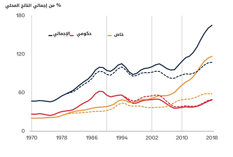 3. تتراكم الديون على كل من القطاعين العام والخاص