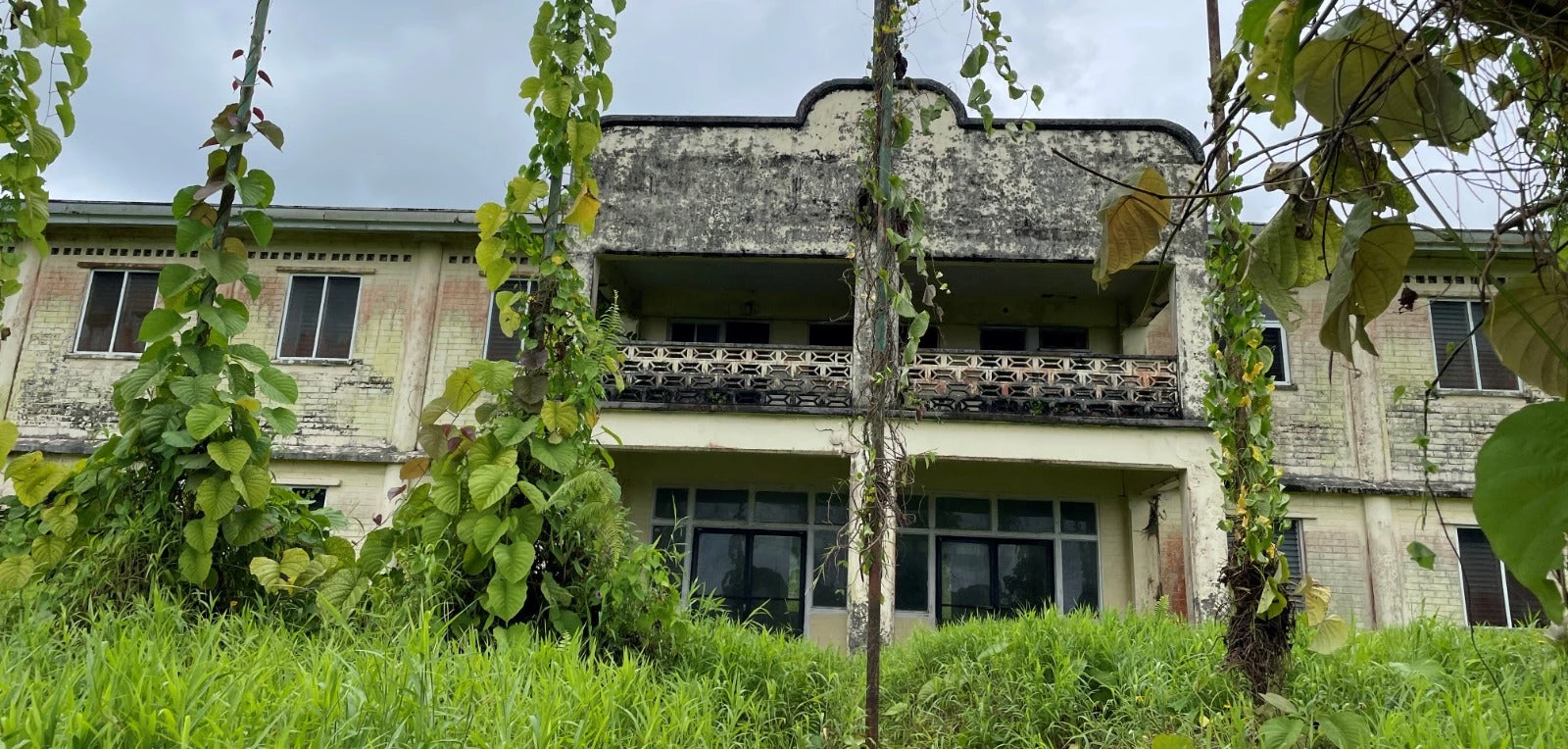 The building sitting amongst the quietly but persistently growing rainforest, used to be one of the most important vocational schools in the country – the Pohnpei Agricultural and Trade School (“PATS”). Many people in the capital have memories of their time studying here, and it hasn’t been in disrepair for long, but already, the rainforest is growing over the disused building and the screeches of tropical birds have replaced the sounds of students and teachers that used to ring through the area.