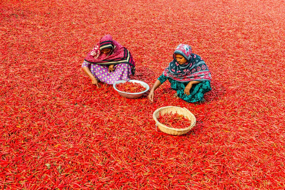 The biggest crops grown in Bangladesh are three types of rice, wheat, and potatoes. Crops such as jute, mangoes, chickpeas, and groundnuts are also produced.