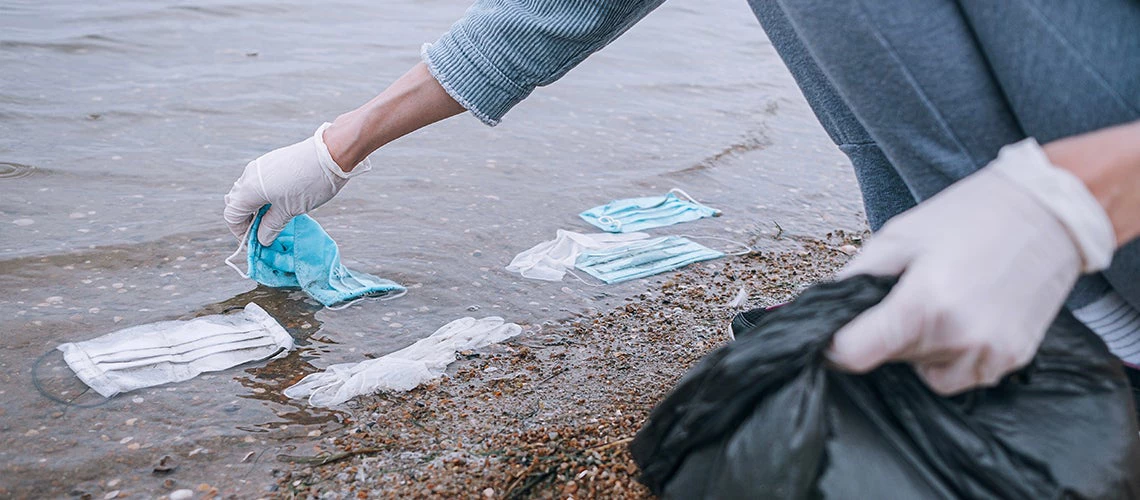For example, about 129 billion disposable masks are used every month worldwide. That’s about 3 million per minute and 50,000 per second! These masks made from plastic microfibers make up just a small part of tons of pandemic-associated plastic waste that is generated. Estimates indicate 1.56 billion face masks end up in the ocean over the year. This amounts to another 4,600 to 6,200 metric tons of marine plastics waste. That’s roughly equivalent to as many as 62 blue whales – the largest animal on Planet Earth, 100 ft long and weighing in at around 180,000 kgs.