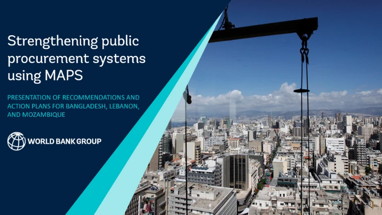 Thank you for participating in this event on strengthening public procurement systems in Lebanon, Bangladesh, and Mozambique through the Methodology for Assessment Procurement Systems (MAPSII). MAPS is the universal tool to identify the strengths and weaknesses of a public procurement system and develop recommendations and an action plan for future reforms.
