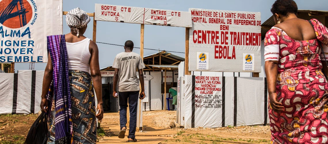 Beni, North Kivu region, Democratic Republic of Congo. Families go the Ebola Treatment Center to visit a family member who is held in quarantine in the centre. Photo: World Bank / Vincent Tremeau Beni, North Kivu region, Democratic Republic of Congo. Families go the Ebola Treatment Center to visit a family member who is held in quarantine in the centre. Photo: World Bank / Vincent Tremeau