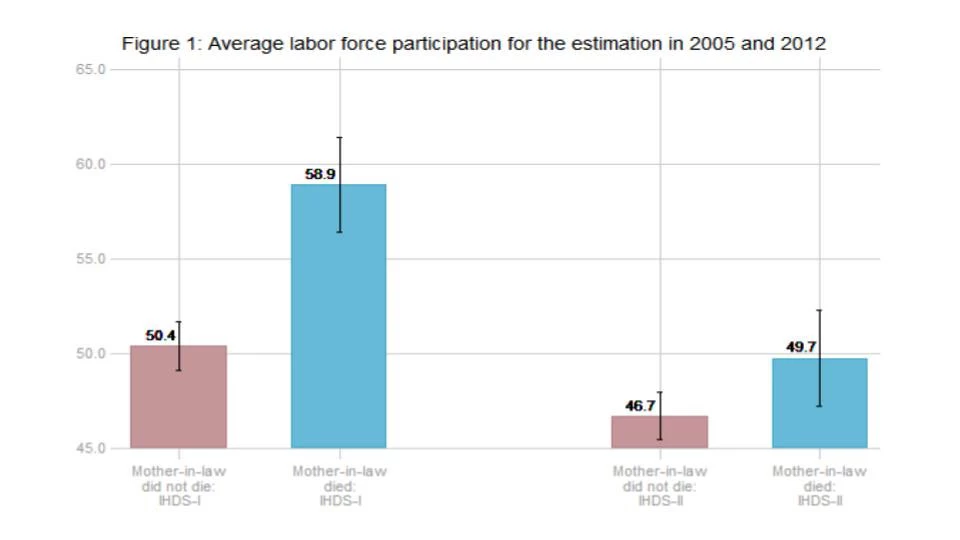 Women’s labor force participation is thwarted by rigid gender roles that assign women a disproportionate role in housework and childcare. In developing countries, women’s participation in the labor market is further hindered by enduring social norms that constrain women’s autonomy and mobility. A coresident mother-in-law (MIL) may influence women’s employment decisions by driving the two forces in opposite directions. On the one hand, MILs can encourage their daughter-in-law’s (DIL’s) employment outside the home by sharing their housework and childcare responsibilities. On the other hand, MILs can impede the DIL’s labor force participation by reinforcing restrictive social norms and constraining her mobility and bargaining power. The overall effect of the MIL on women’s labor force participation will depend on which of the two counteracting mechanisms dominate. In my job market paper, my coauthor Madhulika Khanna and I examine the effects of the MIL’s presence on women’s labor force participation in India.