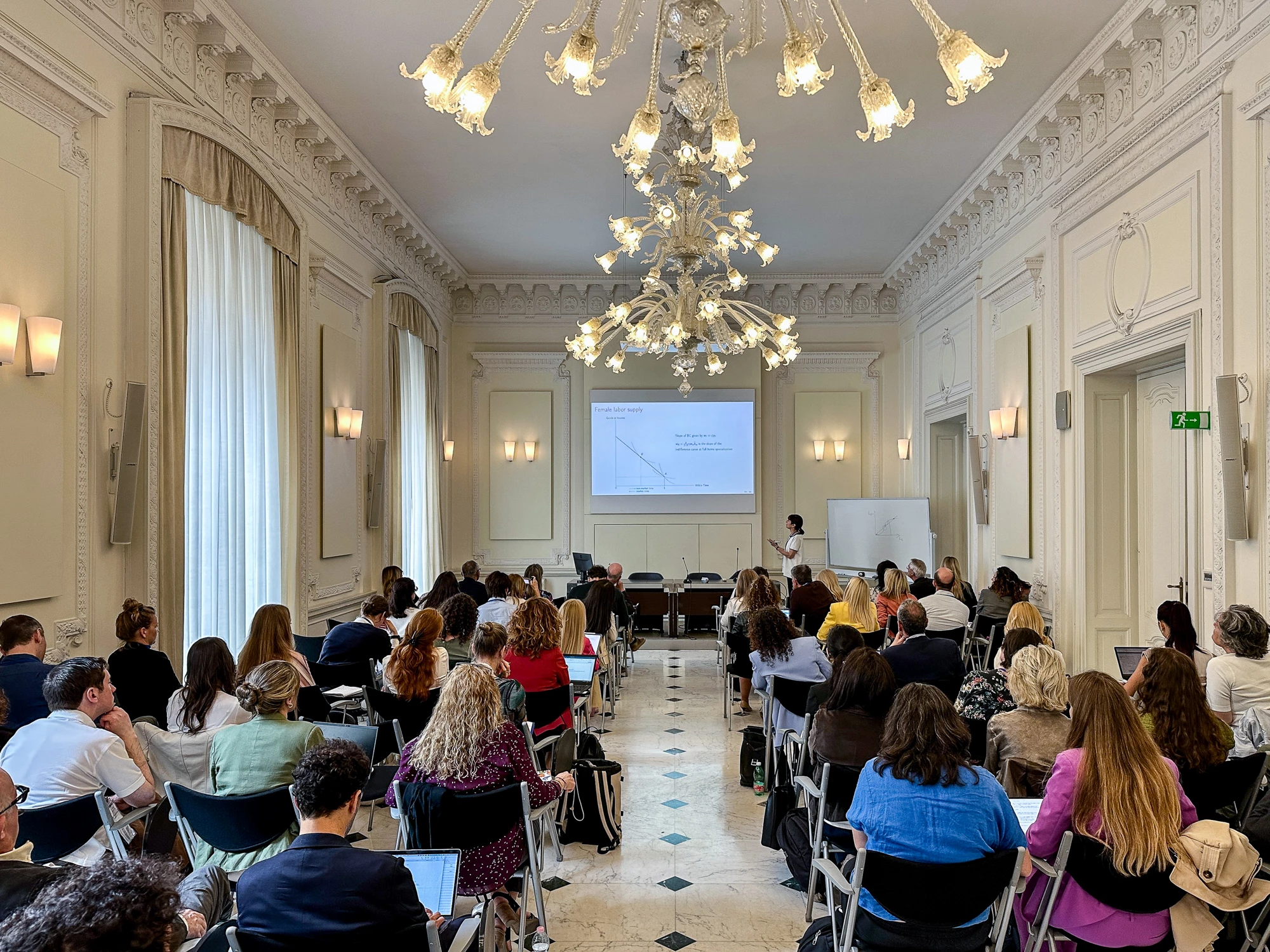 Claudia Olivetti’s keynote speech highlighted persistent constraints facing women’s access to jobs, tracing the career costs of motherhood, social norms, and labor market constraints, and set the stage for the workshop’s focus on drivers and solutions.