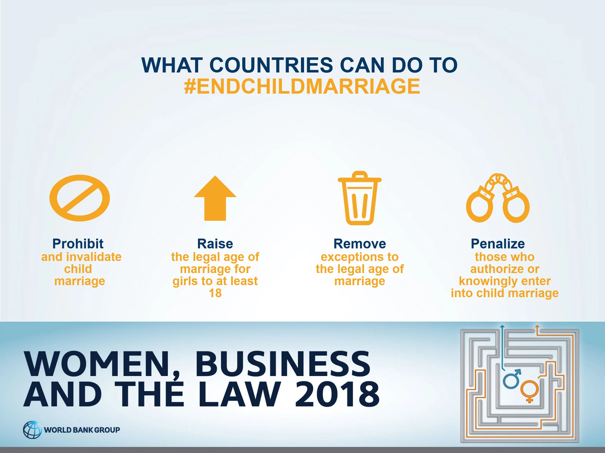 - Amend their laws to establish 18 years as the minimum age of marriage with no exceptions and penalize those who fail to comply with the law.
