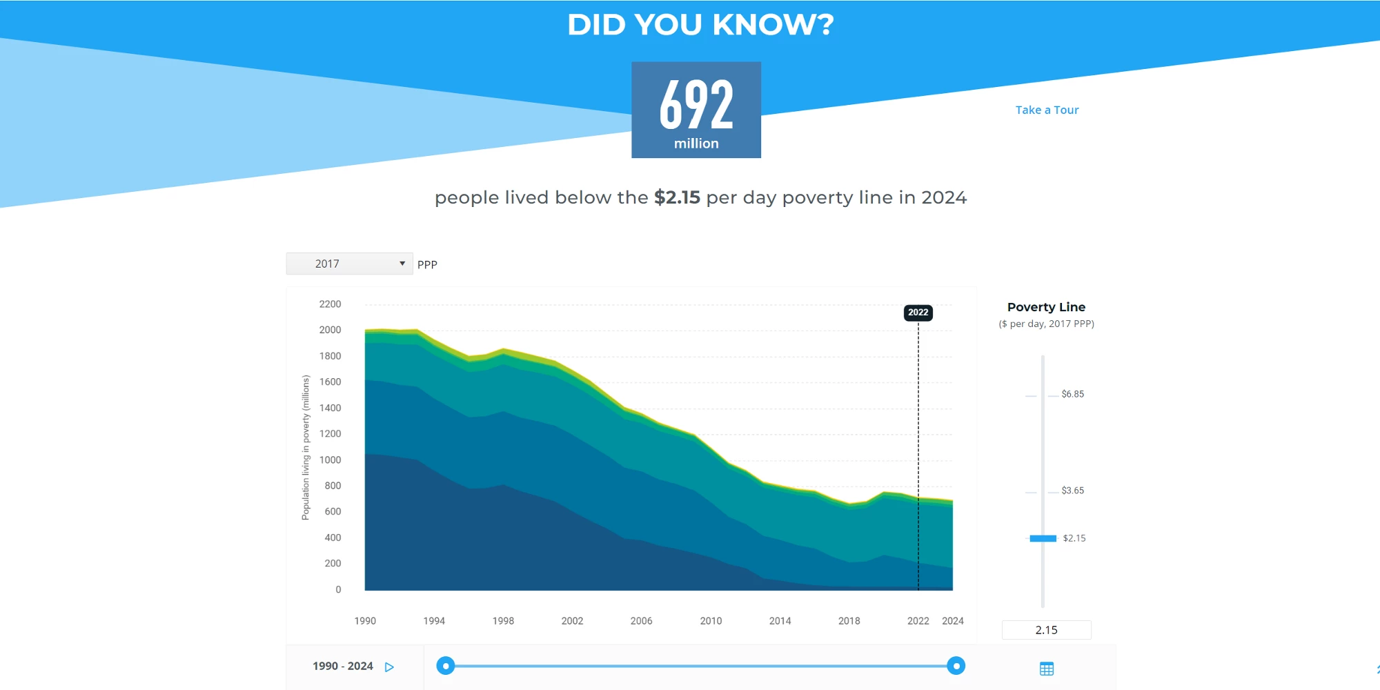 In 2022, the global poverty headcount ratio at the International Poverty Line ($2.15 per person per day, 2017 PPP) has remained rounded to 9 percent, with a marginal upward revision in the total number of extreme poor from 712 to 713 million. By 2024 this number is expected to decline to about 692 million extreme poor in the world.