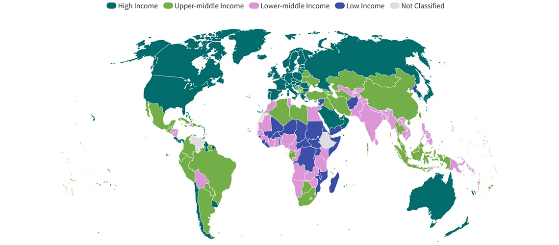 Every year, the World Bank Group classifies the world’s economies [1] into four income groups: low, lower-middle, upper-middle, and high. These classifications, updated each year on July 1, are based on the previous year’s Gross National Income (GNI) per capita, expressed in U.S. dollars [2] using the Atlas method.