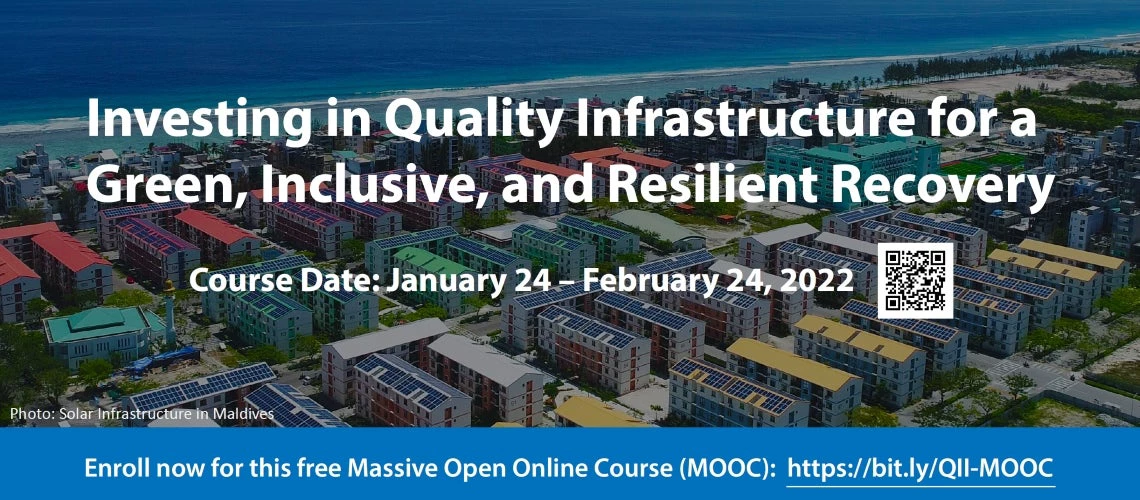 Click here to learn more about the QII Partnership. Register for the Quality Infrastructure Investment MOOC at https://bit.ly/QII-MOOC. No prior knowledge of infrastructure is necessary—anyone with an interest in infrastructure development will find the MOOC useful and interesting. I hope to see you there!
