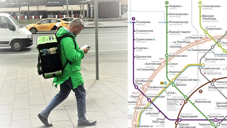 The boom in online food retail is visible in Moscow. On their way to and from work, commuters cannot avoid the bright yellow jackets and cubic backpacks of Yandex Eats deliverers or the similar lime green outfits of Delivery Club workers. The ubiquity of the delivery service uniform is a sign of the vibrant food delivery culture in Russia’s capital.