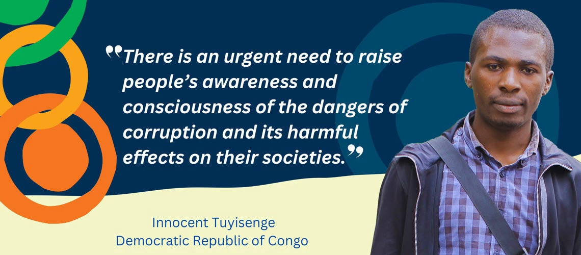 But, what are the root causes of corruption? Corruption is evinced in the hearts of rapacious and covetous individuals as an obsession with money and metastasizes into a burning, red-hot flame that destroys two sacred values of humanity—virtue and morality. In Africa, apart from the wars and social conflicts tearing the continent apart, corruption can be likened to a dreaded virus that weakens or adversely affects economies, justice systems, governance, and human rights. Tackling corruption together to ensure the future development of their countries should be the top priority of civil society and youth organizations.