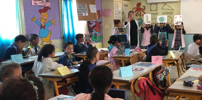 Conocí a una de estas maestras en la escuela Écoles Oued Eddahab en Kenitra (Marruecos). En un aula colorida que ella misma decoró, utilizaba herramientas pedagógicas creativas que había aprendido en YouTube para asegurarse de que todos los niños aprendieran, participaran y se divirtieran. Cada letra del abecedario la asociaba al sonido de un animal y a un movimiento de la mano; por ejemplo, la “S” era la “Señora Serpiente” y se representaba con un movimiento ondulante. La maestra decía una palabra y la deletreaba usando los sonidos y haciendo el movimiento correspondiente. Los chicos escribían la palabra y se la mostraban. Esto le permitía identificar fácilmente a los que tenían dificultades y ajustar el ritmo de la clase para ayudarlos a encarrilarse. Todos los niños participaban y estaban atentos: yo observaba cuidadosamente. Lo más importante es que todos los chicos participaban y no tenían miedo a equivocarse. A cada alumno de la clase se le enseñaba de una forma que comprendía: con sonido, con mímica, con asociación. Ante mí se encontraba una maestra que había internalizado que su rol no era simplemente enseñar, sino asegurarse de que cada chico de la clase aprenda.