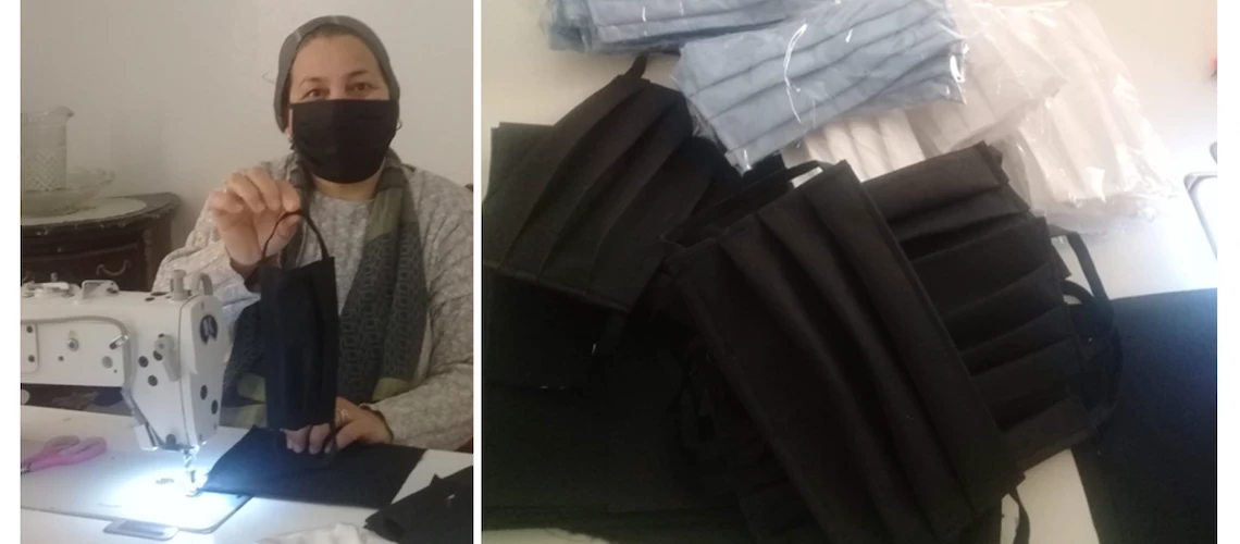 Kawther Mouelhi a compris qu’elle devait rapidement adapter son modèle commercial afin de surmonter la crise et de pouvoir fournir une source de revenus aux femmes qu’elle emploie. Face à la demande croissante et non satisfaite de masques et de vêtements de protection, elle a décidé de former les couturières affiliées à SheShares à la fabrication de ces équipements au profit des agents de santé dans le nord-ouest de la Tunisie. Cette nouvelle activité lui permet de continuer de garantir une source de revenus à 70 femmes dans l’une des régions les plus pauvres du pays. Depuis la mi-mars, la société s’est attelée à la production de centaines de milliers d’équipements de protection destinés à quelque 5 000 travailleurs du secteur médical et paramédical dans les villes de Jendouba et du Kef. Ce sont en tout 300 000 masques qui ont été confectionnés, ainsi que 100 000 charlottes, couvre-chaussures et blouses de laboratoire.