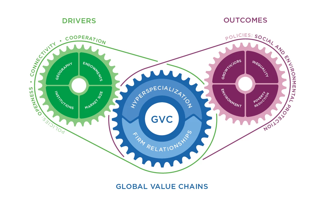 Le développement passe-t-il par les chaînes de valeur mondiales ? Nous avons abordé cette question dans un état d’esprit ouvert et objectif, avec le souci d’étudier les avantages et les inconvénients d’une croissance économique et d’un développement tirés par les chaînes de valeur mondiales.