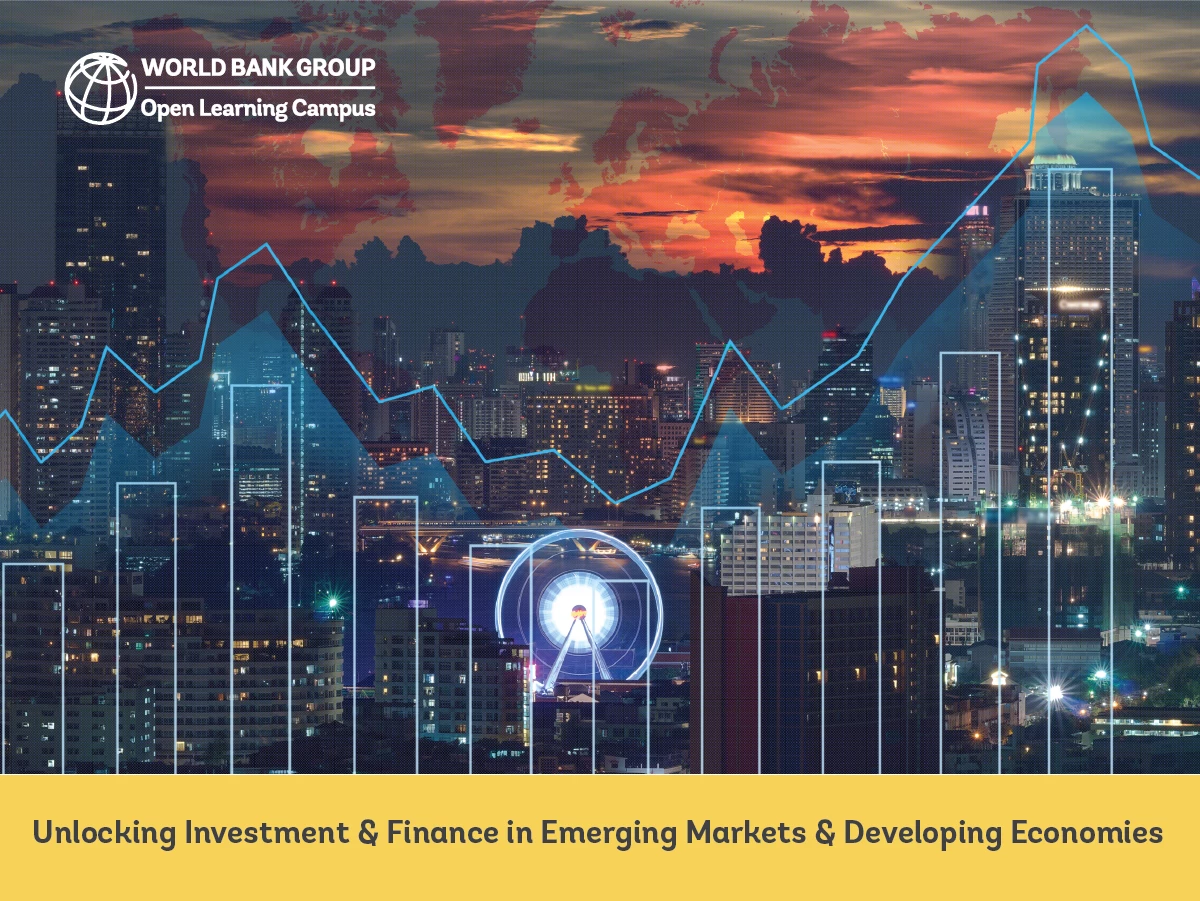 2030年までに持続可能な開発目標(SDGs)を達成するには、年4兆5,000億ドルに上るEMDE諸国への投融資がさらに必要だと言われています。国際投資家、国際開発金融機関、そして政策担当者が、現在の世界の喫緊の課題に対処しつつ、EMDE諸国の巨大な投資機会を解き放つべく努力を重ねています。世界銀行グループが開設した無料のオンラインコース「新興国・途上国への投融資を促進する:Unlocking Investment and Finance in Emerging Markets and Developing Economies (EMDEs)」に登録し、この国際的な取組みとこれを実現するための画期的な手法を学んでみませんか。