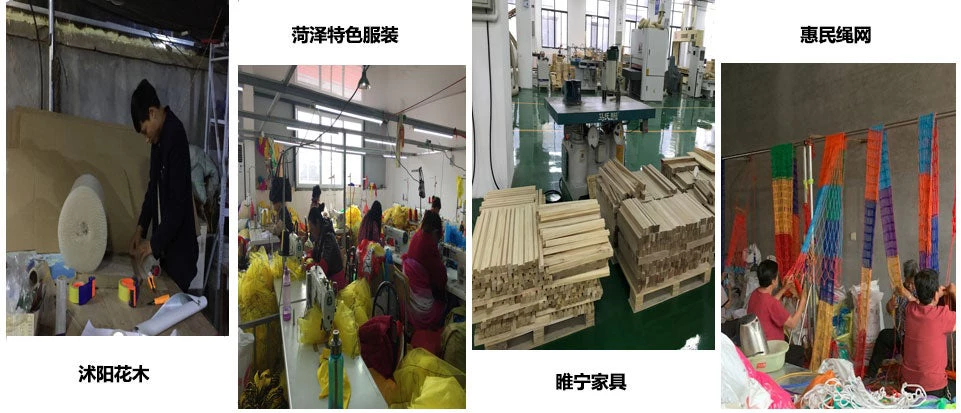 在面临这些挑战的情况下,我们通过实地考察有了进一步的心得。我们看到了什么呢?首先,惠民县依托历史悠久的传统产业,在淘宝网上销售各类专业化绳网。历史上惠民县的绳网是用稻草或皮革手工编织的。如今,惠民县有多家绳网厂,生产从建筑安全网到足球网和花园装饰绳网等各种绳网产品。电商大大促进了惠民县的绳网产业发展。电商提供了进入全国性市场的机会,让所有厂家都能扩大生产规模,鼓励新进者进入市场。当地政府为支持集群化发展,建立了产品展示厅和电子商务中心,当地厂家可以在此录制广告,获得营销支持。企业家与政府之间建立的密切联系与30年前中国乡镇企业的发展有些类似。专业化乡村集群在全国各地如雨后春笋,有些依托传统产业,如惠民的绳网编织,有些则开辟全新产业,如睢宁的家具生产(图2)。