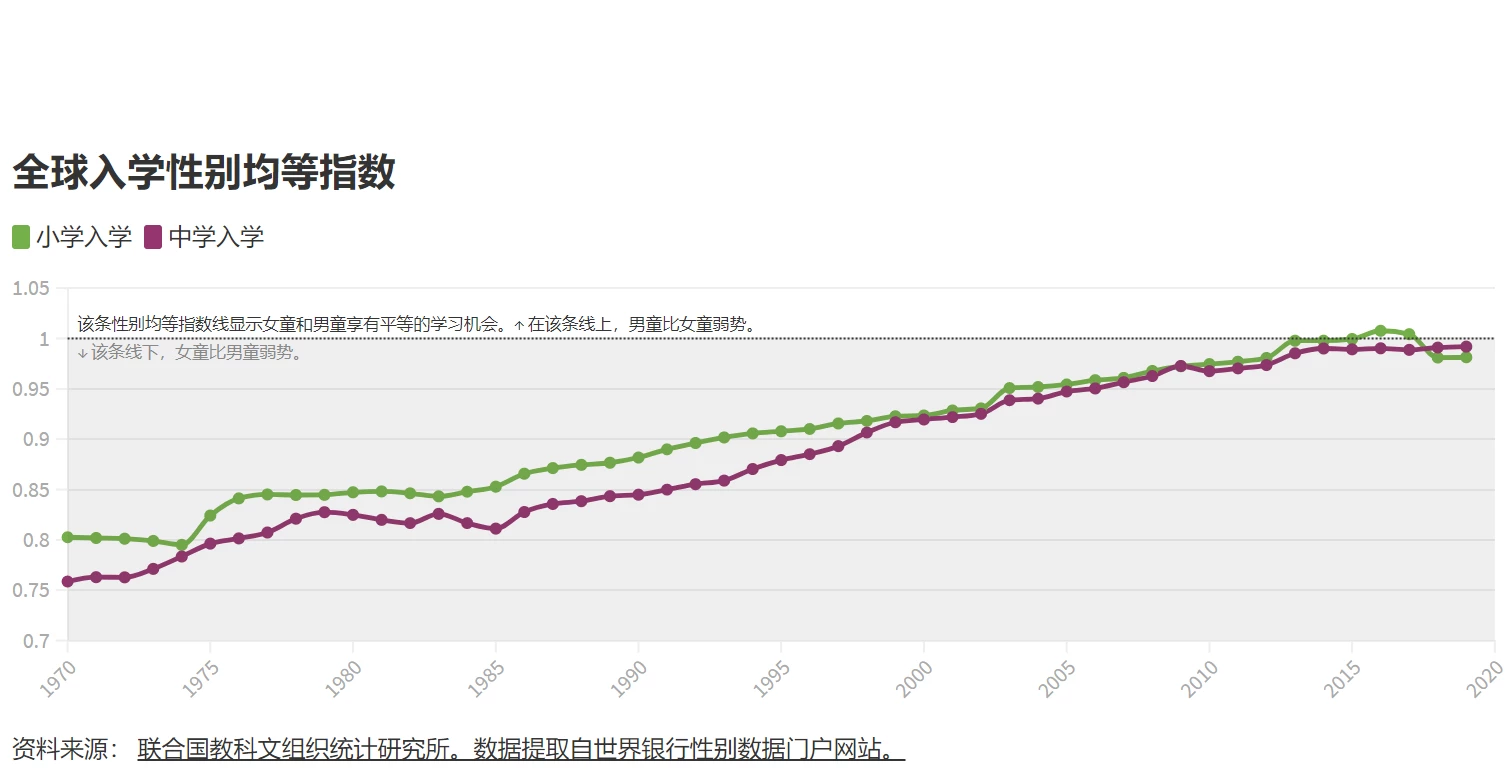 2021年国际教育日为思考这一问题、利用性别数据门户网站上的数据探讨以往趋势以及重申我们对投资女童教育和促进女性劳动力参与所作承诺提供一次重要契机。