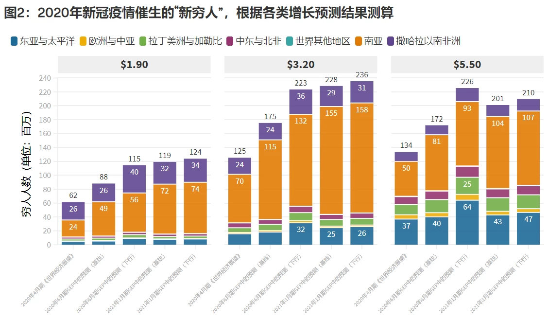 图2:2020年新冠疫情催生的“新穷人”,根据各类增长预测结果测算